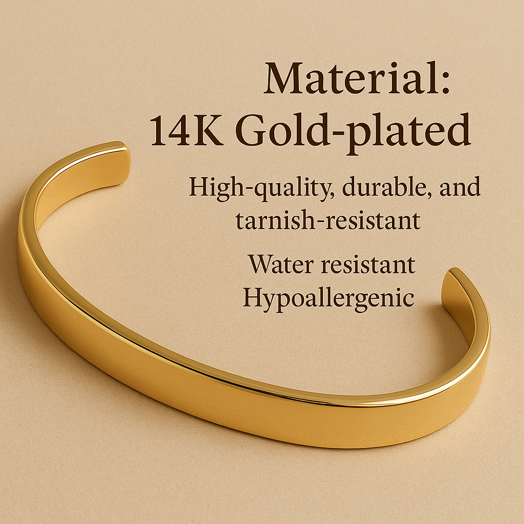 I purchased a custom gold men's cuff bracelet for our anniversary, featuring our wedding date and a special message engraved inside. The bracelet looks stunning, and I am thrilled with the craftsmanship. I'm excited to give it to my husband and am confident he will cherish it.