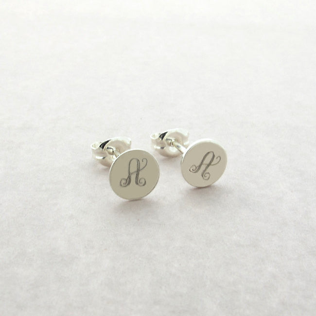 Simple yet interesting everyday stud earrings. Quality sterling silver studs that are ready to be engraved with a monogram of yours! Nice gift idea to any occasion.