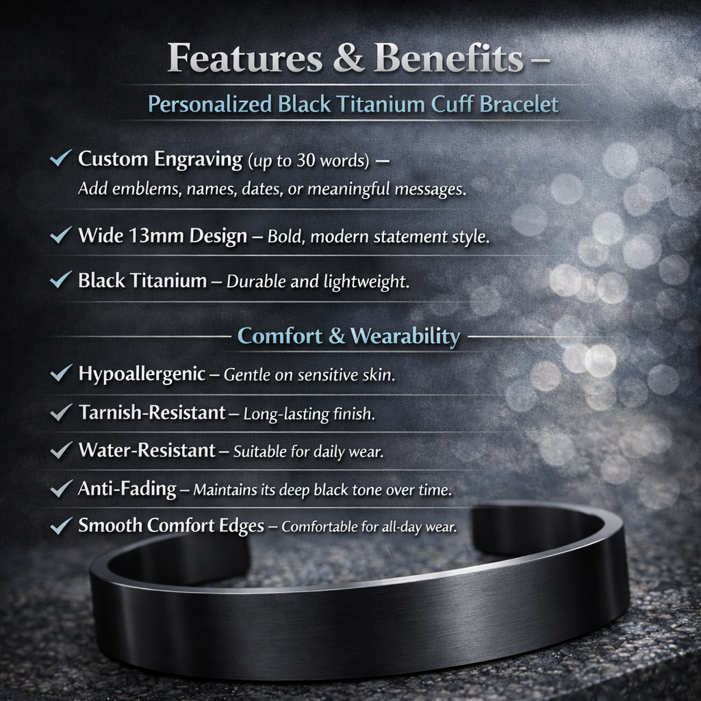 Metal: High-Quality Titanium – Hypoallergenic, Tarnish-Resistant, Waterproof, and Extremely Durable for Everyday Wear