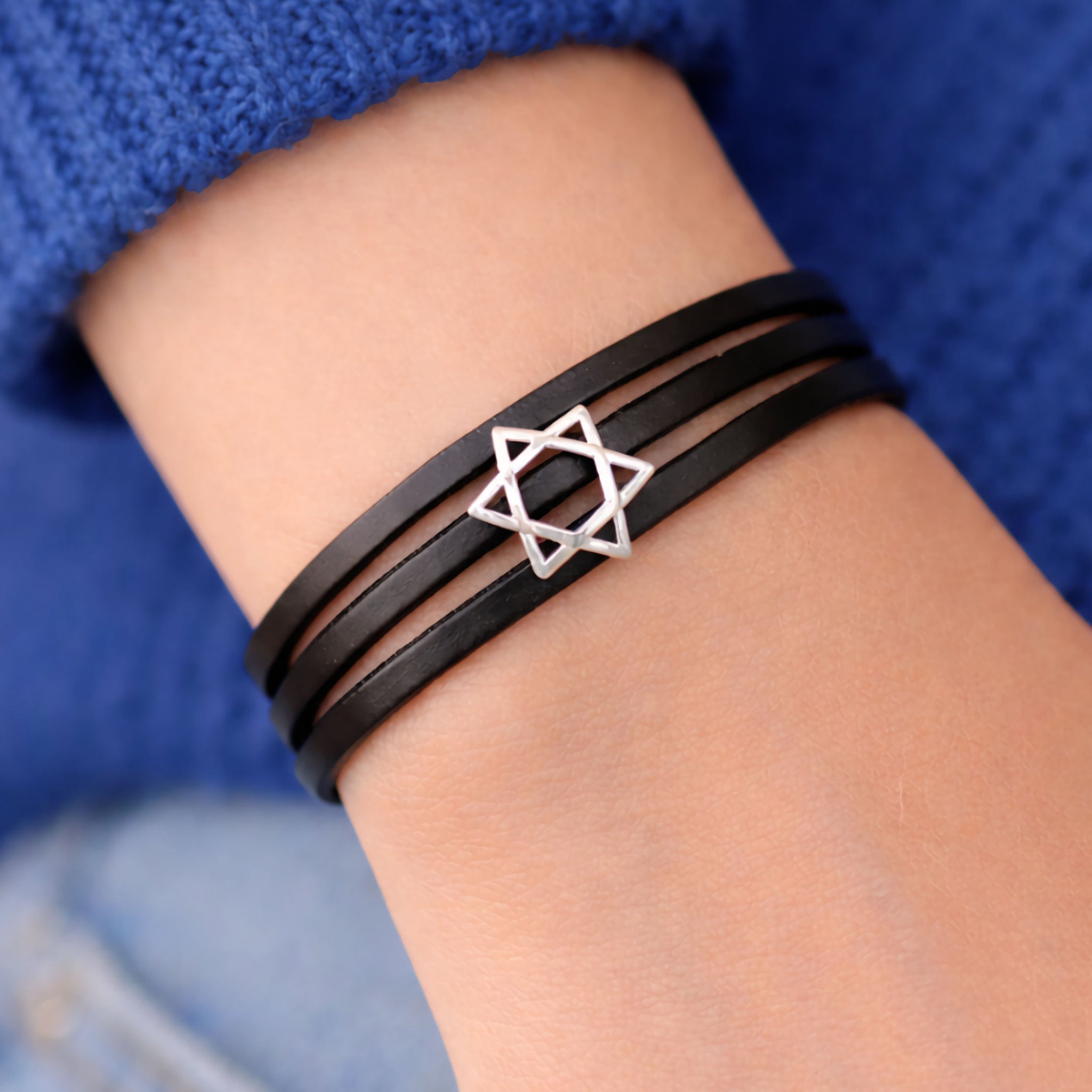Express faith, identity, and timeless elegance with this beautifully handcrafted Star of David leather bracelet for women. Featuring a solid 925 sterling silver Magen David charm paired with soft, premium genuine leather, this bracelet blends spiritual meaning with modern minimalist style.