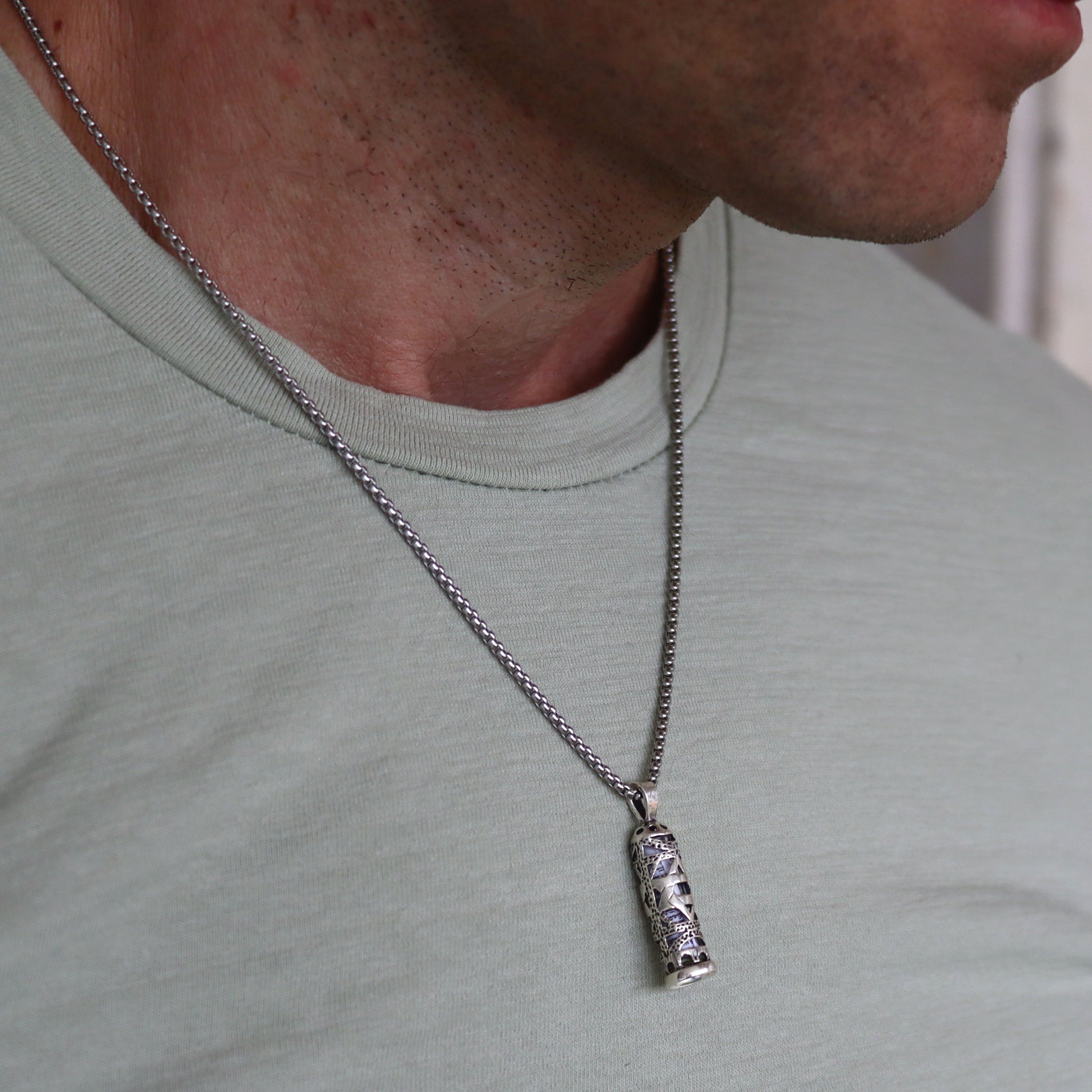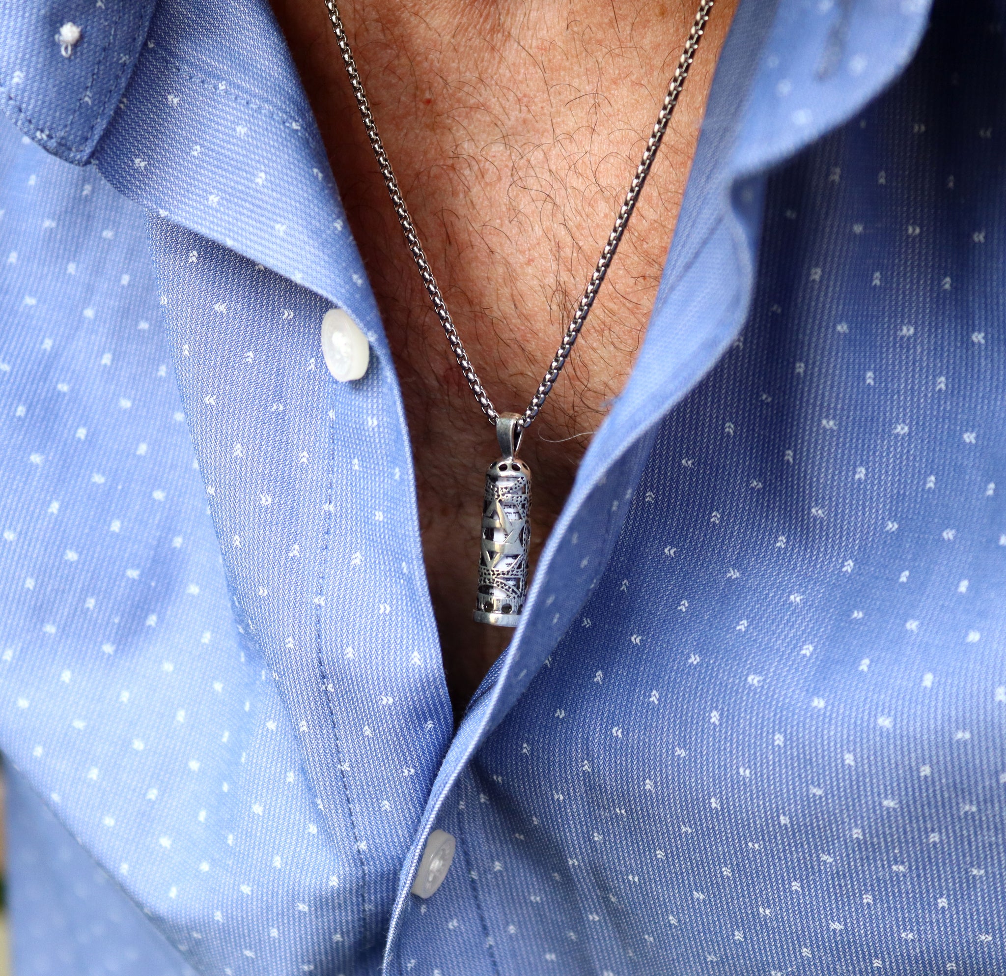 Sterling Silver Mezuzah Necklace for Men – Star of David Pendant with Hebrew Scroll | Unique Jewish Gift from Israel | Messianic Blessing Jewelry
