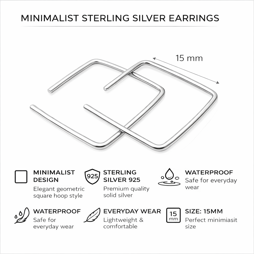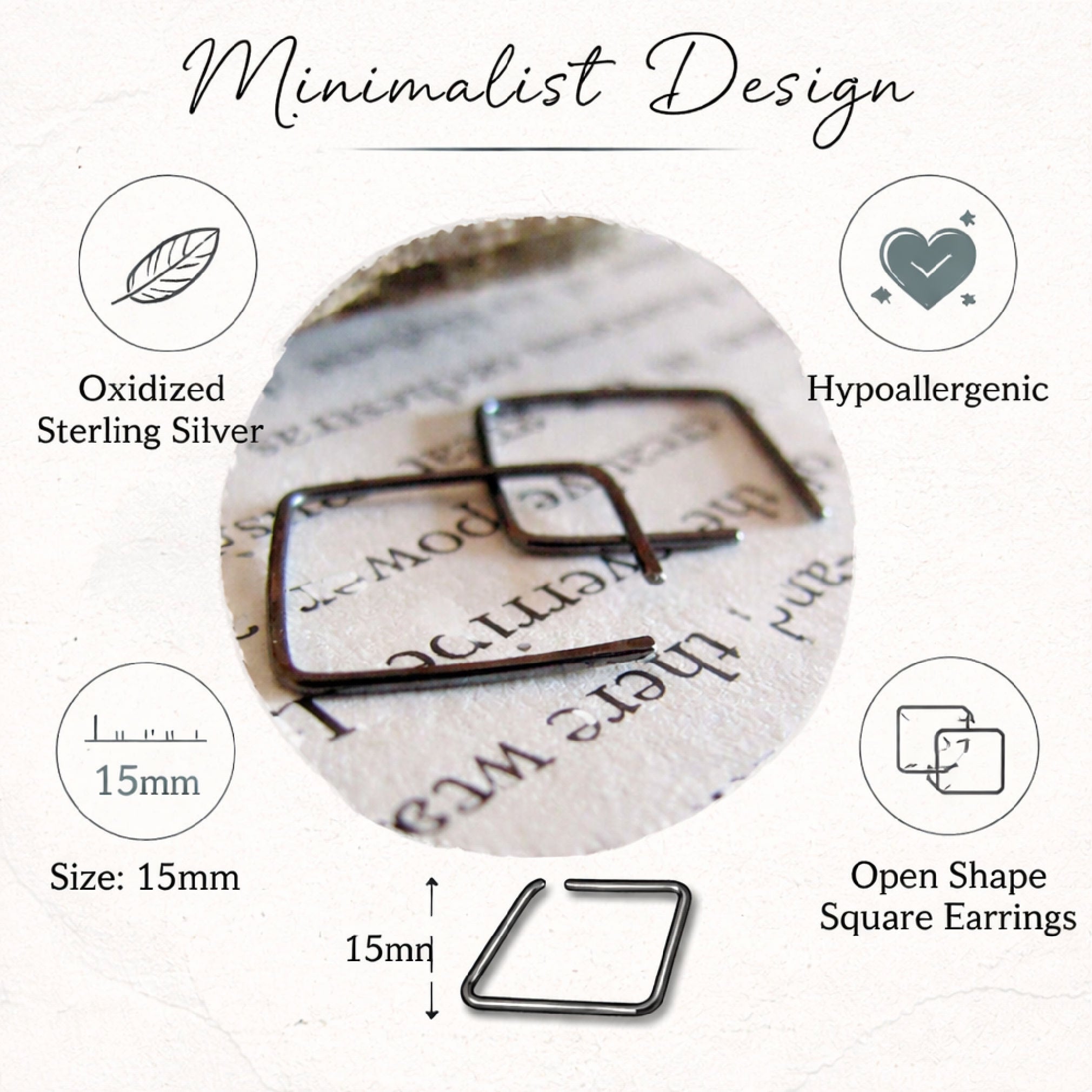 Fine unisex Oxidized Silver Square Hoops. The earrings are nice for both women and men.