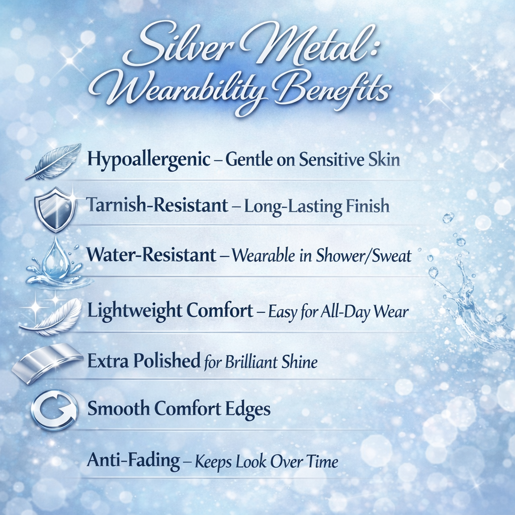 - Silver - Hypoallergenic, Tarnish-resistant