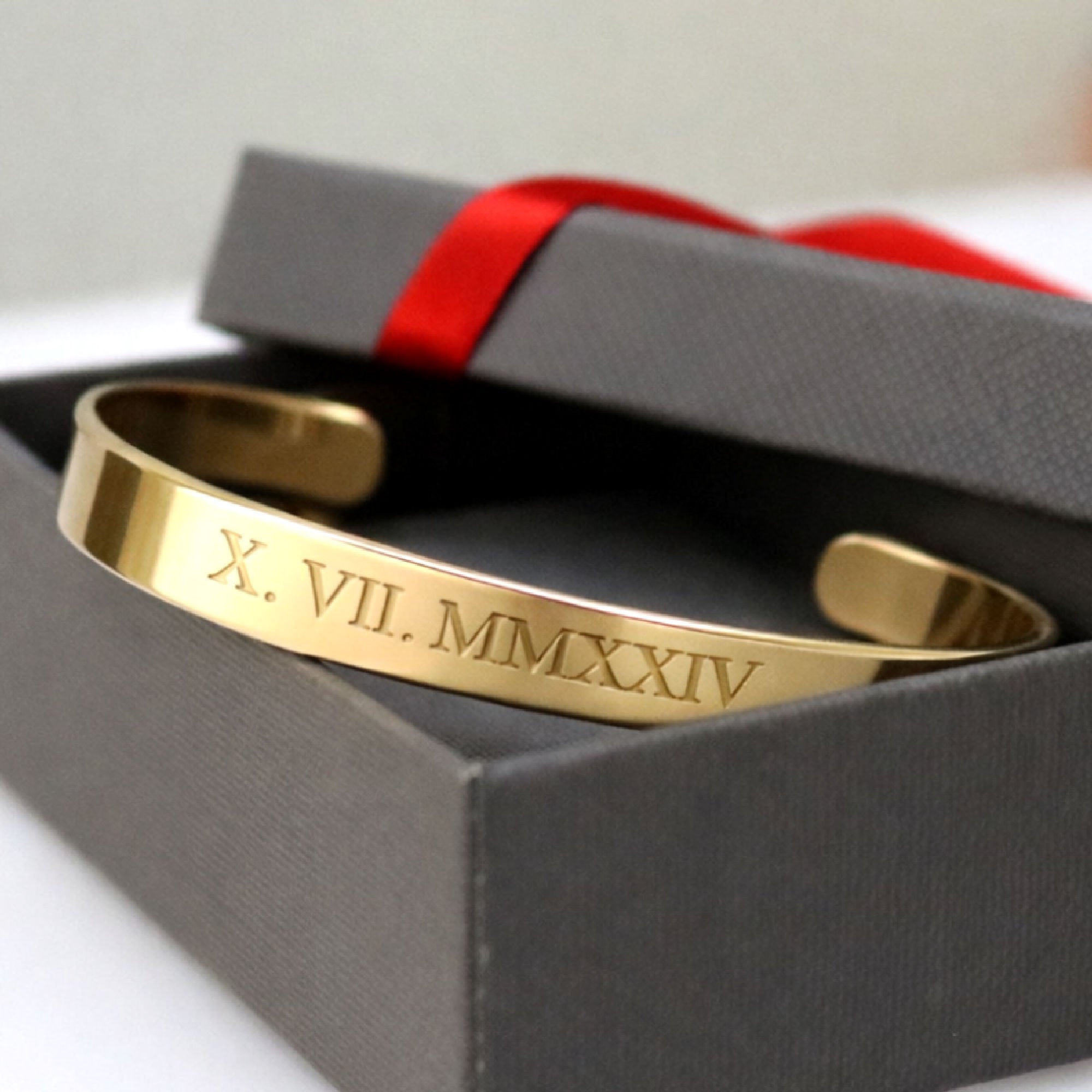 This bracelet is a timeless Gold Roman Numeral Bracelet for Her, created to celebrate love, memories, and meaningful moments. Designed with elegant Roman numeral engraving, it allows you to personalize a special date such as an anniversary, wedding day, birthday, or engagement. The classic gold finish gives this bracelet a luxurious yet minimalist look, perfect for everyday wear or special occasions.